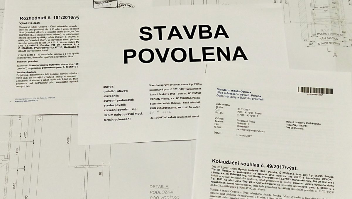 Pro provozovatele a majitele budov (Bytová družstva, Společenství vlastníků, soukromé osoby či firmy) zhotovíme projektovou dokumentaci pro stavební povolení. Včetně statického posudku a požárně –bezpečnostního řešení. Stavební povolení je vyžadováno místně příslušnými stavebními úřady při instalací nových výtahů, rekonstrukcích nebo výměnách výtahů stávajících. Současně provádíme i inženýring projektů – zajištění vyjádření dotčených orgánů, vyřízení stavebního povolení a po realizaci díla i kolaudačního souhlasu.